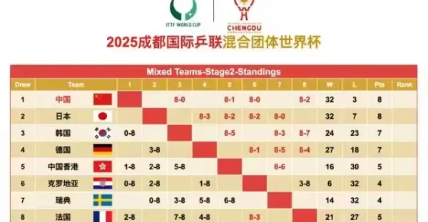 混團世界盃最新積分榜出爐:僅中日保持4場全勝,占據榜單前二!