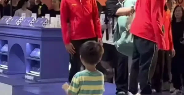 看到小朋友跑過來送禮物,全紅嬋趕緊下台接著,嬋寶超愛小朋友