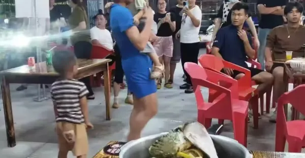 全紅嬋抱孩子吃大排檔,回家後越來越可愛,本地村民都很愛護她