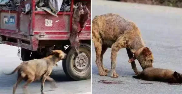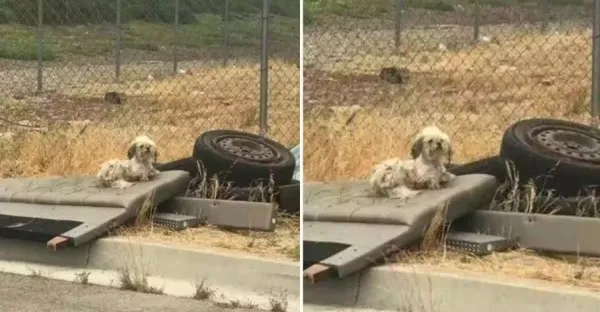 流浪狗一直守在輪胎旁不願離開,路人看到後卻拒絕幫助,湊近一看熱淚盈眶