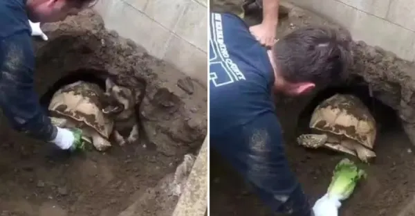 女子稱自己的「丈夫和家裡的狗、烏龜」全卡在地洞裡了,消防員趕到一看笑噴!