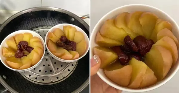 全家人吃蒸蘋果,酸酸甜甜,口感很好,特別適合脾胃不好的人