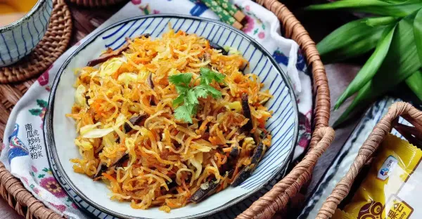 炒米粉,先煮就錯了,學南方人簡單做,鬆散干香,盤底不見一滴油