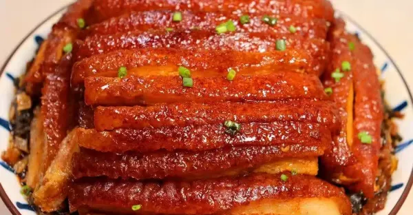 自製廣東名菜南乳扣肉,出鍋色澤油亮,入口肥而不膩,好吃到舔盤