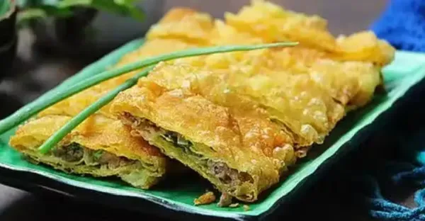 2張豆皮,1塊豬肉,微微炸制,出鍋「餅」香酥嫩,勝過一切早餐