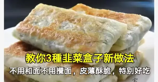 教你3種韭菜盒子新做法,不用和面不用攪面,皮薄酥脆,特別好吃!