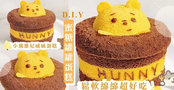 零失敗製作維尼蛋糕!DIY萌度破表「蜜糖罐罐戚風蛋糕」,弄給你身邊的維尼控吧~♡