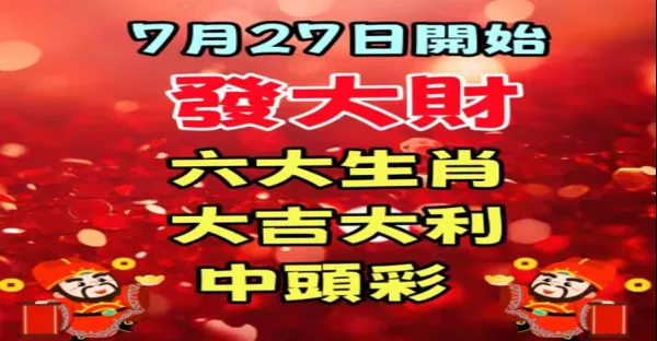 7月27日開始發大財,六大生肖大吉大利 中頭彩