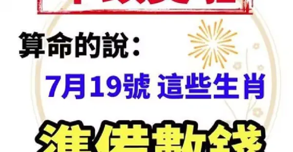 7月19號有機會發橫財的生肖,準備數錢啦!