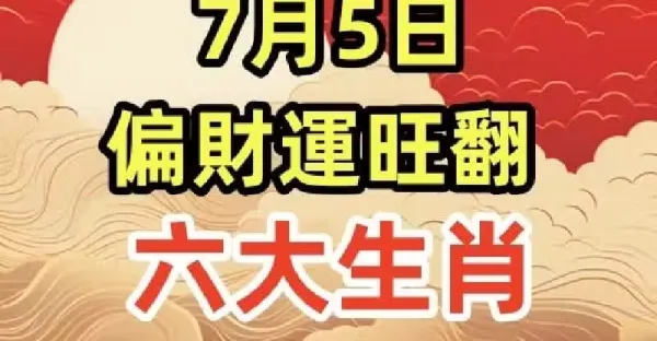 7月5日,中大獎 發橫財 享富貴的六大生肖