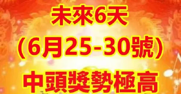 未來6天(6月25~30號)中頭獎勢極高的生肖