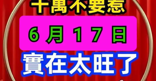 明天 「6月17號」 三生肖 橫財最旺