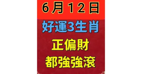 6月12日 有好運的「 3生肖」 正偏財都「 強強滾 」