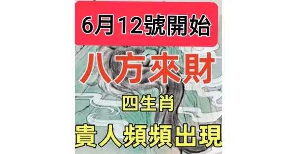 6月12號開始「 四生肖 」 八方來財 貴人頻頻出現