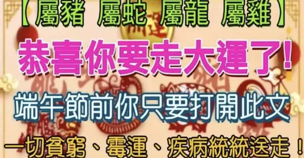 屬豬 屬蛇 屬龍 屬雞 恭喜你要走大運了!端午節前你只要打開此文,一切貧窮、霉運、疾病統統送走!