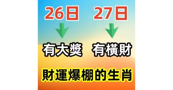 5月26日有大獎,5月27日有橫財,財運爆棚