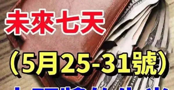 未來七天(5月25~31號)中頭獎勢極高的生肖