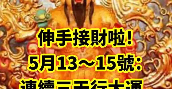 伸手接財啦!5月13~15號連續三天行大運,發大財的生肖