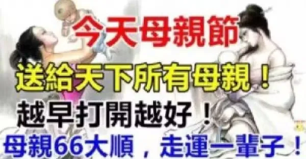 今天母親節,送給天下所有母親!越早打開越好!母親66大順,走運一輩子