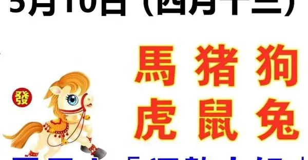 5月10日:官運 財運 桃花運 橫財偏財並發大財的五生肖