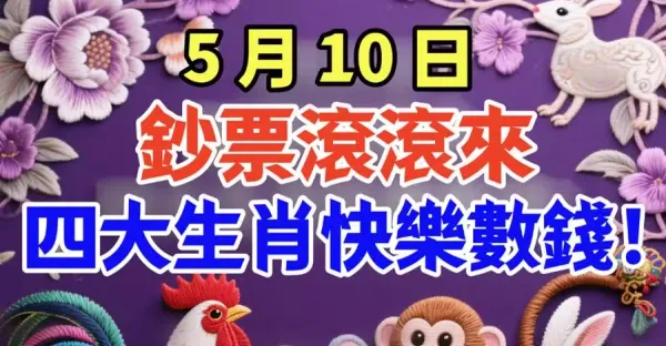 5 月 10 日,鈔票滾滾來,四大生肖快樂數錢!