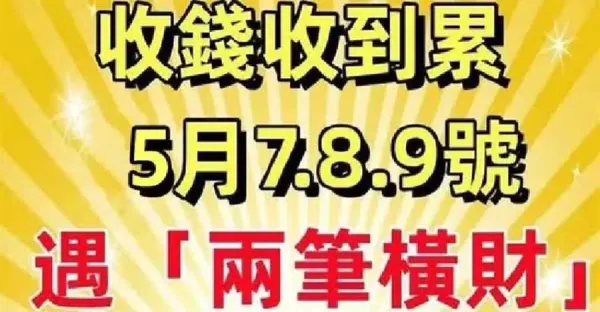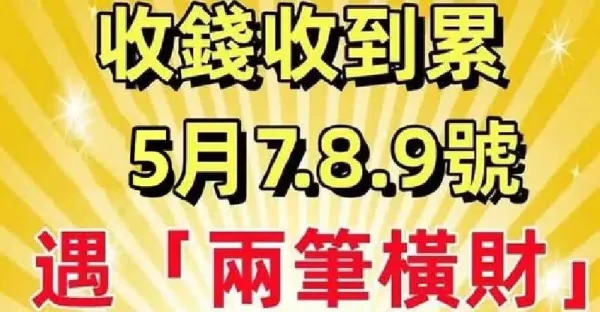 5月7.8.9號遇「兩筆橫財」日子一順百順的生肖!