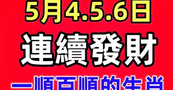 5月4.5.6日連續發財的生肖,天天快樂數錢,一順百順!