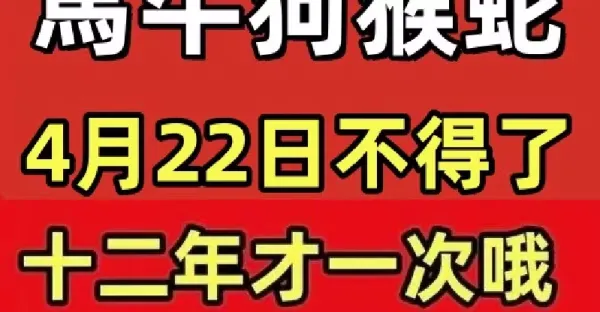生肖(馬牛狗猴蛇)火了,4月22日不得了,十二年才一次哦!