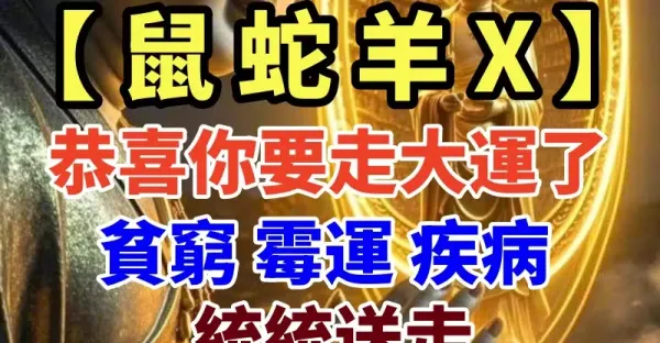 【屬鼠 屬蛇 屬羊 屬X】恭喜你要走大運了,一切貧窮、霉運、疾病統統送走~