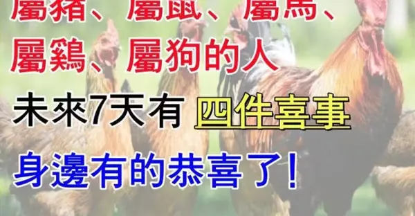 【屬豬、屬鼠、屬馬、屬雞、屬狗的人】未來7天有「四件喜事」身邊有的恭喜了