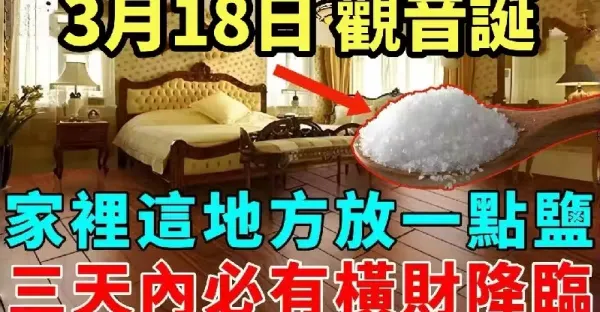 非常靈驗!3月18號「觀音誕」當天,只要在家中這個地方放一點鹽,三天內必有橫財降臨!
