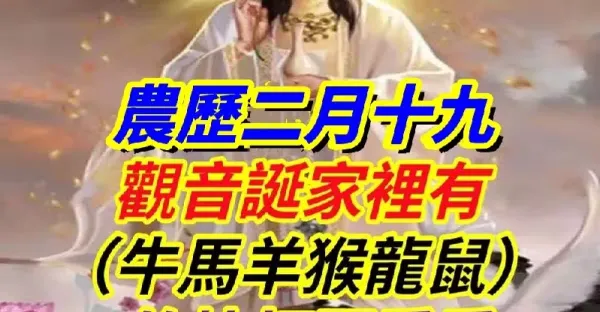 農曆二月十九【觀音誕】家裡有(牛馬羊猴龍鼠)的快打開看看,越快越好!