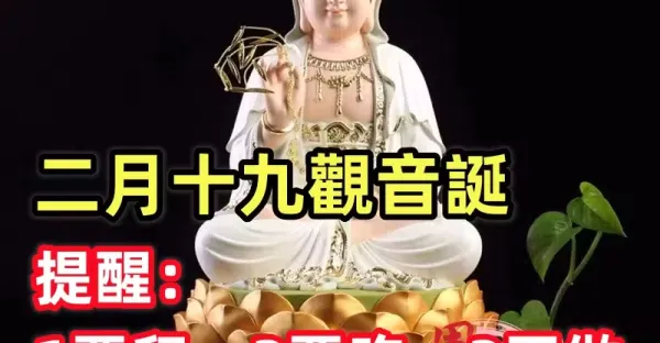 二月十九觀音誕,提醒:1要拜,2要吃,2不做,求得好運一年安康