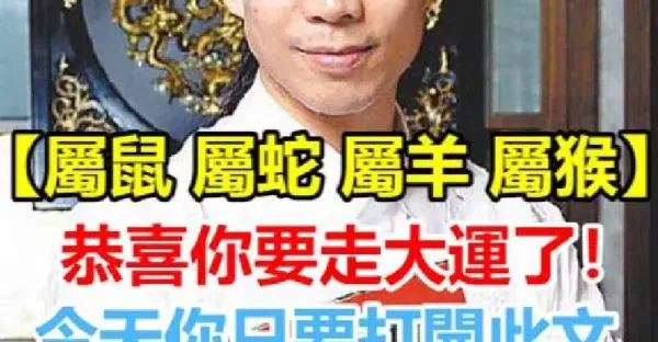 【屬鼠 屬蛇 屬羊 屬X】恭喜你要走大運了,一切貧窮、霉運、疾病統統送走!