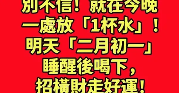 別不信!就在今晚一處放「1杯水」!明天「二月初一」睡醒後喝下,招橫財走好運!