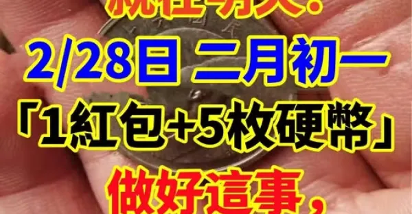 就在明天! 2月28日「二月初一」準備「1個紅包+5枚硬幣」做好這事,招橫財走好運!