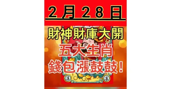 2月28日 財神財庫大開 「 五大生肖 」 荷包漲鼓鼓!