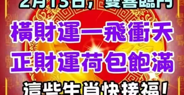 2月13日雙喜臨門,橫財運一飛沖天,正財運荷包飽滿!這些生肖快接福!