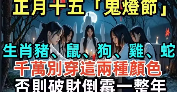 正月十五「鬼燈節」,生肖豬、鼠、狗、雞、蛇,千萬別穿這兩種顏色,否則破財倒霉一整年!