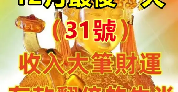 12月的最後一天(31號)收入大筆財運,存款翻倍的生肖