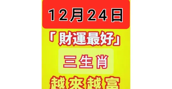 12月24號,三生肖正財持續高升,偏財有大驚喜快來接!