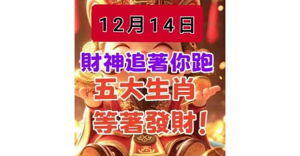 12月14日,財神追著你跑,五大生肖等著發大財!