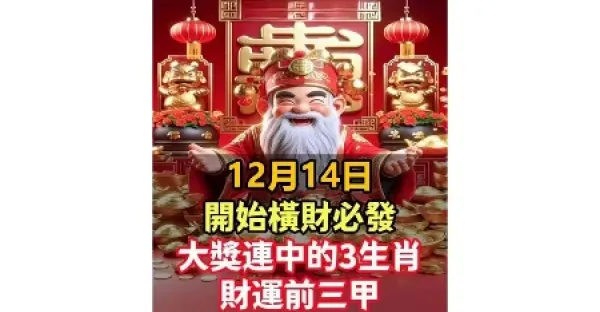 12月14日開始橫財必發,大獎連中的3生肖,財運前三甲