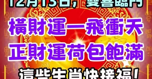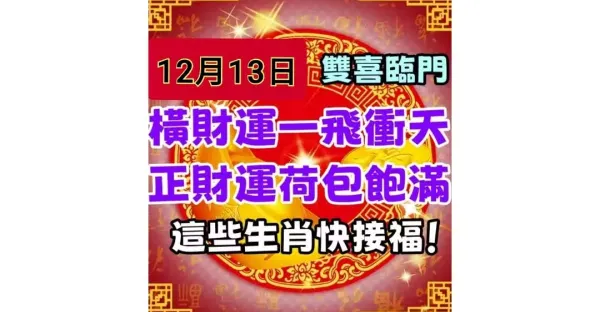 12月13日雙喜臨門,橫財運一飛沖天,正財運荷包飽滿!這些生肖快接福!