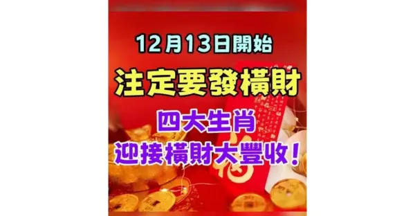 12月13日開始註定要發橫財,四大生肖迎接橫財大豐收!