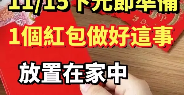 就在今天! 11/15下元節,準備「1個紅包做好這事」放置在家中這個位置,招橫財走好運