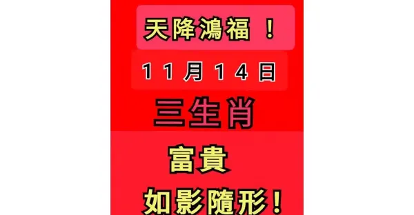 天降鴻福!11月14日 三生肖 富貴如影隨形!