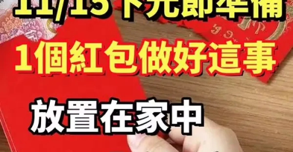 就在明天! 11/15下元節,準備「1個紅包做好這事」,放置在家中這個位置,招橫財走好運!