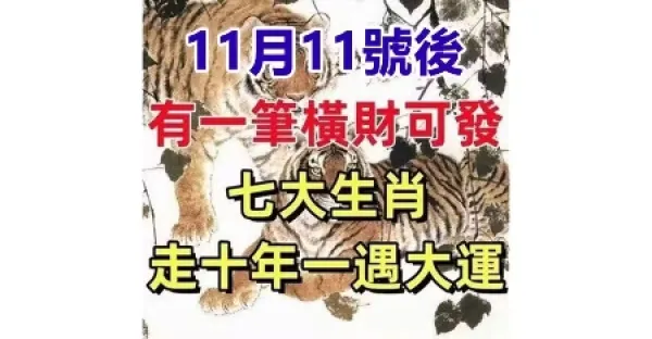 11月11號後有一筆橫財可發,走十年一遇大運的七大生肖