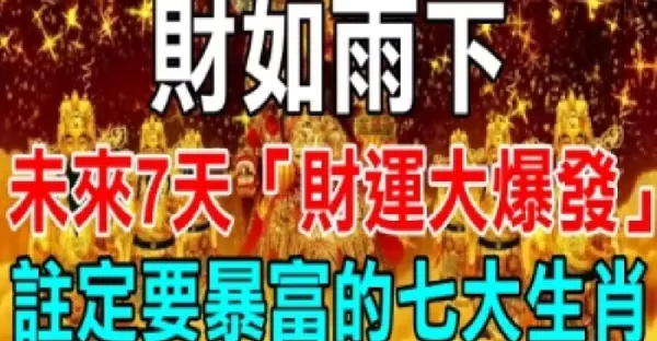 財如雨下!未來7天「財運大爆發」註定要暴富的七大生肖